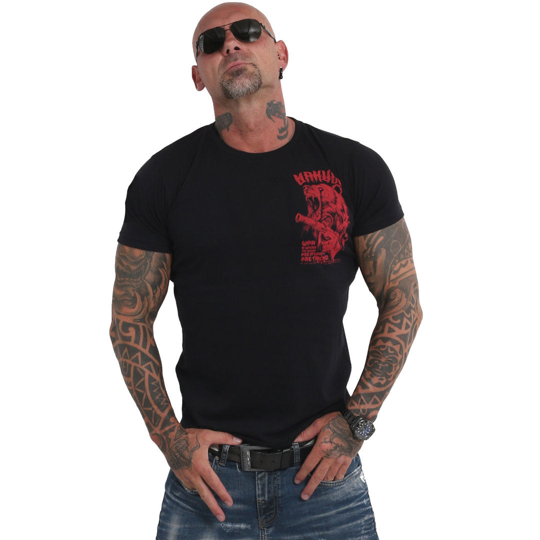 T-Shirt mit detailreichen Prints. Kleiner Print auf der linken Brust und auf dem rechten Ärmel. Großer detailreicher Print als Hingucker hinten. Logo Patch an der Seite. 100 % Baumwolle.